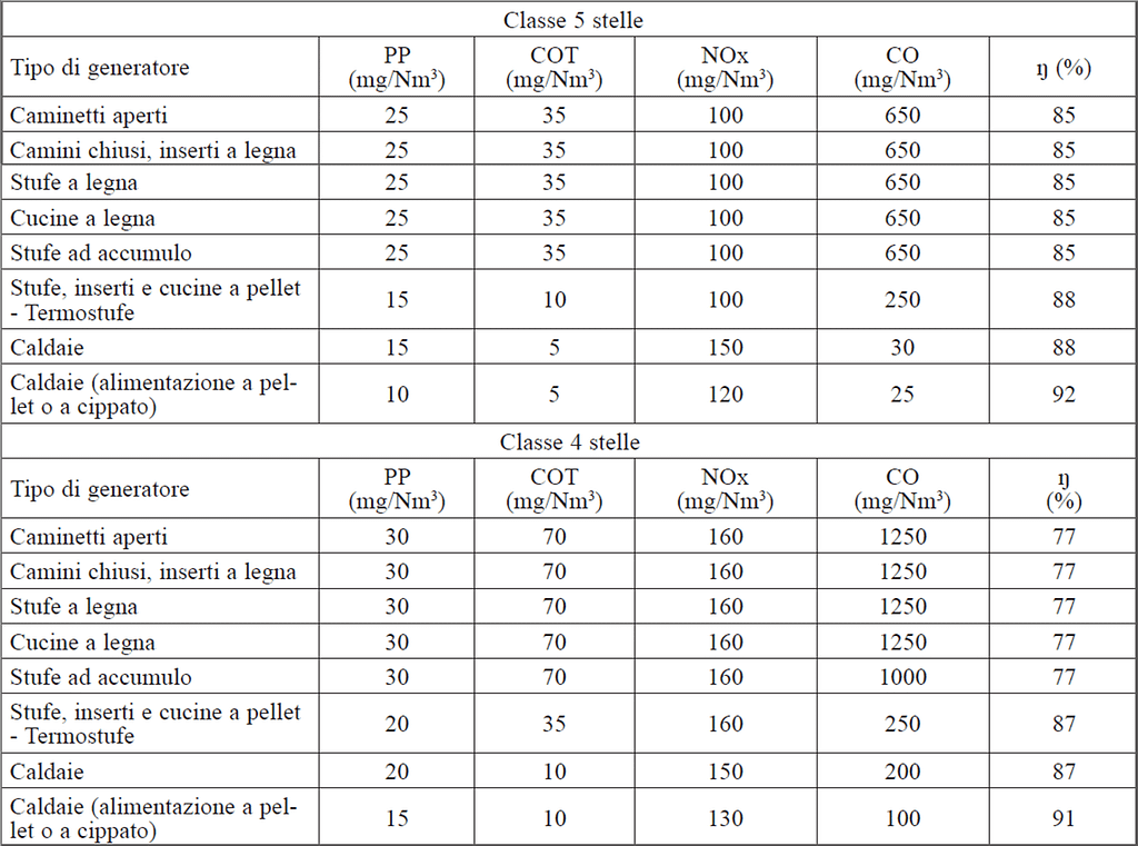 Attraverso il D.M. 186/2017 è stato reso possibile esemplificare le prestazioni ambientali dei generatori di calore a biomassa tramite un numero di stelle. Il regolamento (entrato in vigore dal 2 Gennaio 2018) stabilisce infatti i requisiti, le procedure e le competenze per il rilascio di una certificazione ambientale dei generatori di calore alimentati con legna da ardere, carbone di legna e biomasse combustibili.