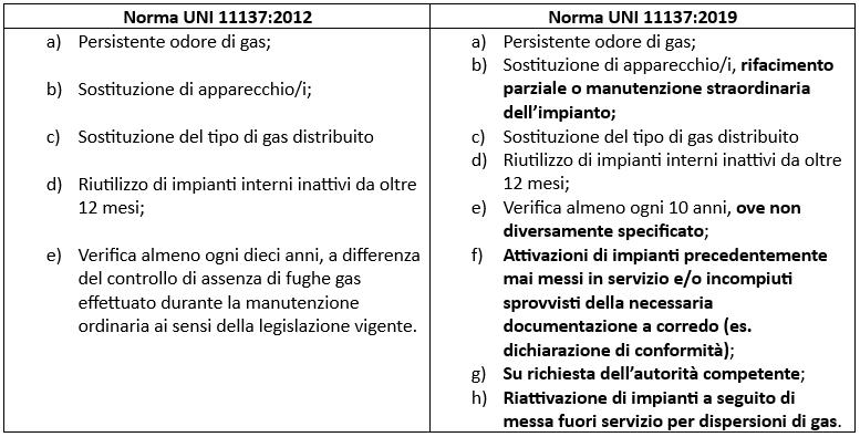 Oltre a ciò, la nuova versione ha ampliato il capitolo “circostanze che richiedono la verifica dei requisiti di tenuta” e di seguito riportiamo una tabella che ci mostra le differenze tra le due edizioni.