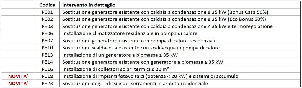 Validiamo ed effettuiamo la trasmissione Enea per i seguenti interventi: